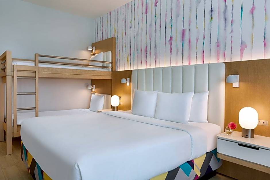 As the sun starts to set, one of the best spots in the city is right on top of The Viv Hotel—literally! The outdoor rooftop pool, a favorite for guests of all ages, lets you soak up golden rays while offering breathtaking views of the surrounding Anaheim skyline. Take a dip in the heated water or just lie back and enjoy the gentle palm leaves swaying above you. For those seeking a more adult-oriented experience, the hotel boasts a separate heated pool exclusively for adults, allowing for some tranquil moments away from the bustling family fun. Grab your favorite drink from the bar and feel all your worries slip away as you bask in the calm of this rooftop oasis.